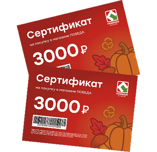 | Вотин Роман Михайлович | 917)82***-75 | Октябрьск | 231793120000810240501 | Сертификат на покупку в магазине ПОБЕДА номиналом 3000 руб |