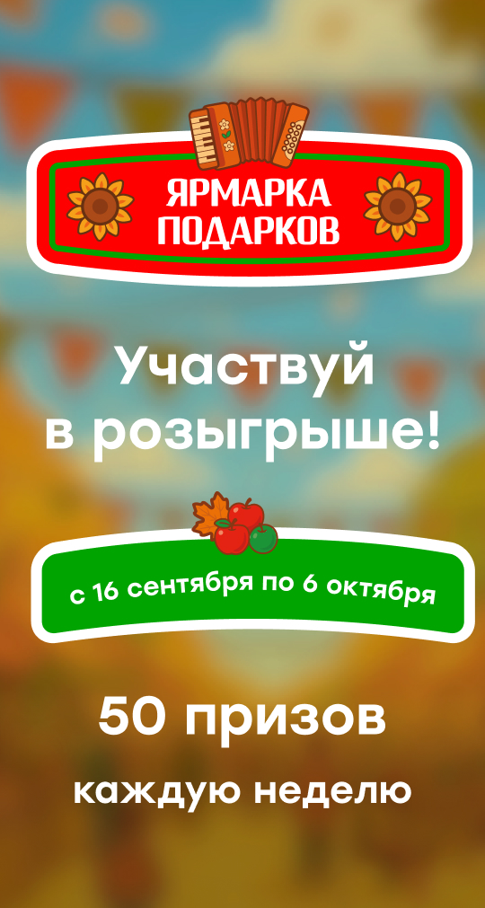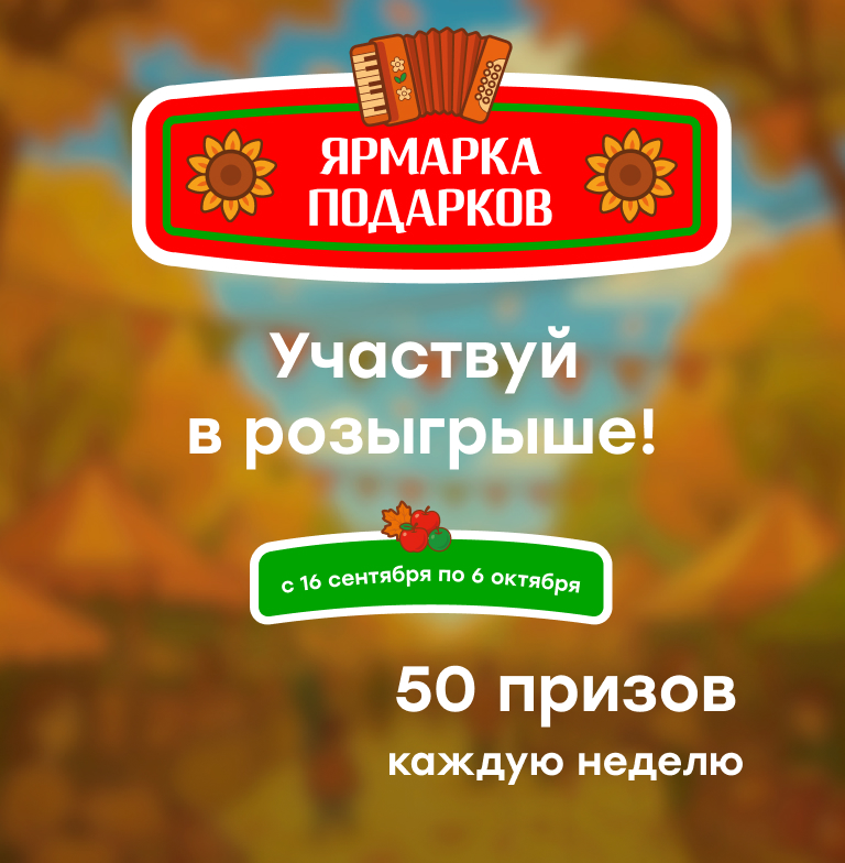 Период выдачи Купонов Акции «Ярмарка подарков»: с 16 сентября 2025 года по 6 октября 2025 года включительно.