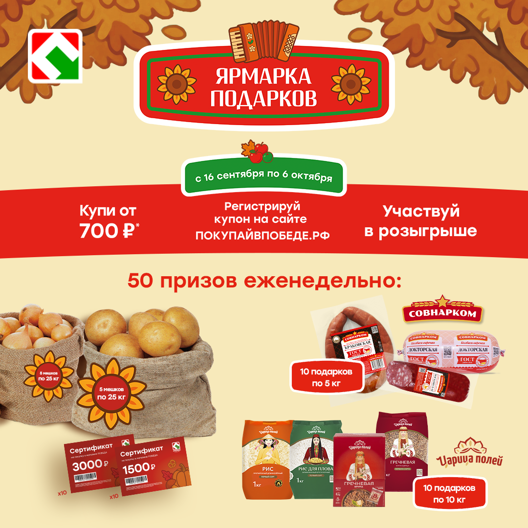 Имена победителей будут опубликованы на сайте Акции покупайвпобеде.рф 23 сентября 2025 года, 30 сентября 2025 года и 7 октября 2025 года.